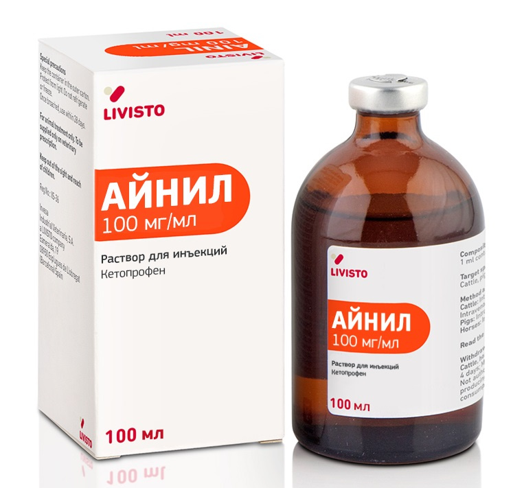 Убой крупного рогатого скота на мясо разрешается не ранее, чем через 5 дней, свиней – через 4 дня после последнего применения препарата. Молоко дойных животных во время и после применения Айнила, разрешается использовать без ограничений.