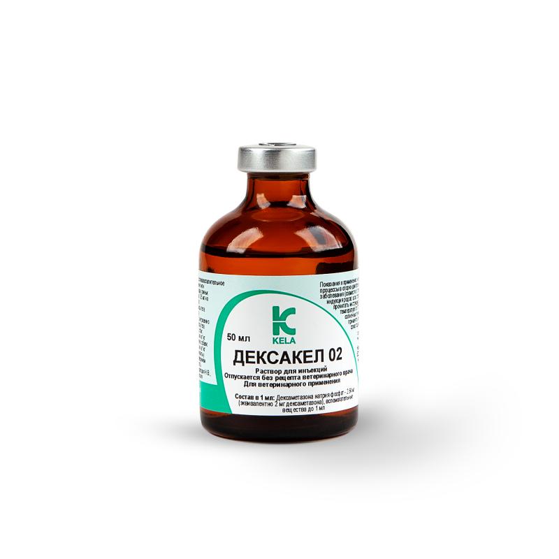 Дексакел 02 применяют при неинфекционных острых воспалительных процессах в опорно-двигательном аппарате (при артритах, периартритах, тендовагинитах, бурситах, вывихах, миозитах, ушибах); острых инфекционных болезнях (в дополнение к средствам этиотропной терапии); аллергических состояниях (астма, аллергические поражения кожи, укусы змей); нарушениях обмена веществ (кетоз у крупного рогатого скота и токсемия беременных у овец); для искусственного вызывания родов у жвачных в последние сроки беременности; при шоковых и стрессовых состояниях (коллапс, анафилаксия, травма).Способ применения и дозы:
